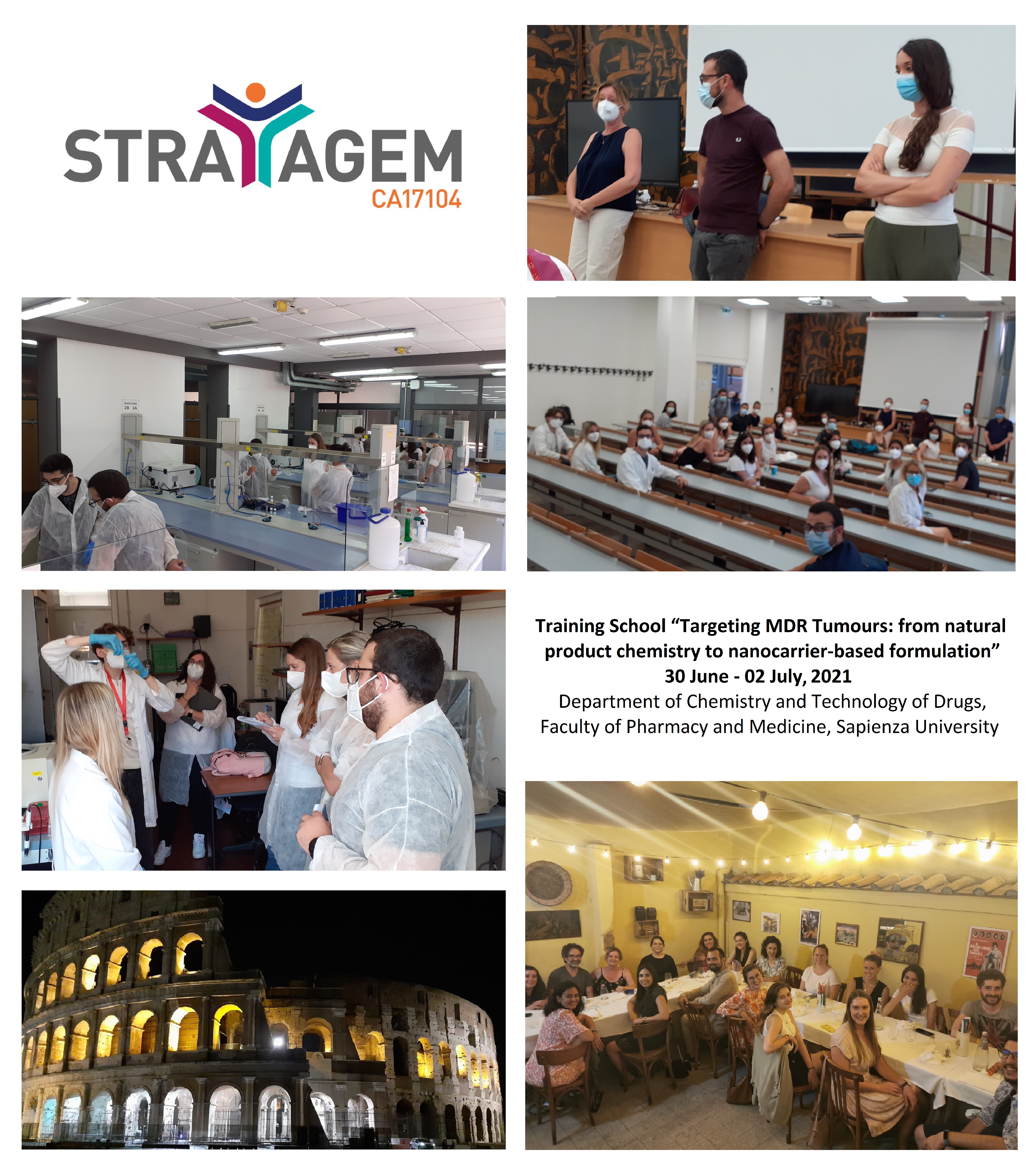 Theoretical and practical notions on the anticancer action of NPs allowed the training school participants (PhD students and Postdocs of STRATAGEM-affiliated laboratories) to explore different aspects from nanoparticles (NPs) synthesis to their incorporation in nanometric carriers capable of targeting MDR tumours.